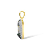 Embellish your chest silhouette with a butterfly pendant full of sparkle and charm! This piece of jewelry features two butterflies adorned with green spinel crystals, fluttering among plants. They are distinguished by their sublime golden appearance, just like the bail. In order to harmonize the whole, the background is highlighted by white cubic zirconia crystals.