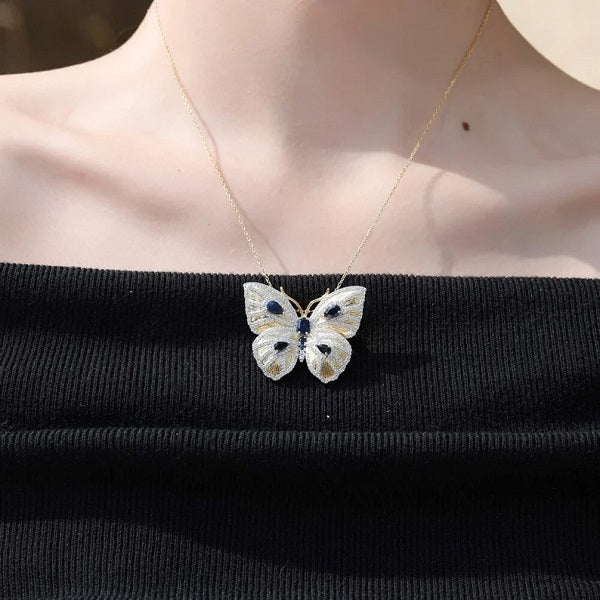 Accentuate your bust with this remarkable butterfly necklace embellished with blue sapphire crystals